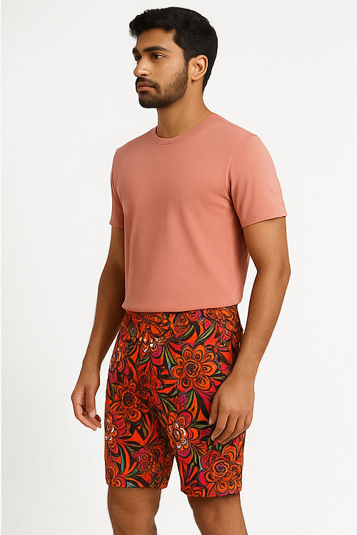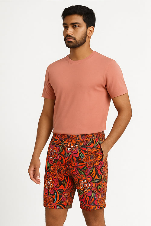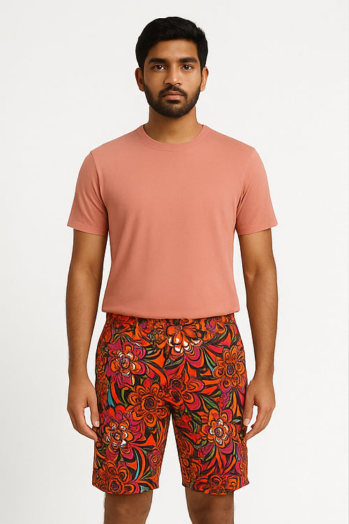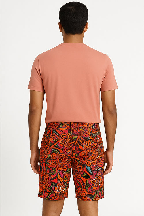 Step out in full color with the Boho Bloom Printed Bermudas. Bursting with psychedelic floral patterns and a retro palette, these statement shorts bring groovy energy to your casual looks. Crafted from a breathable blend, they offer comfort with a hint of stretch, perfect for summer getaways, beach days, or creative streetwear vibes.